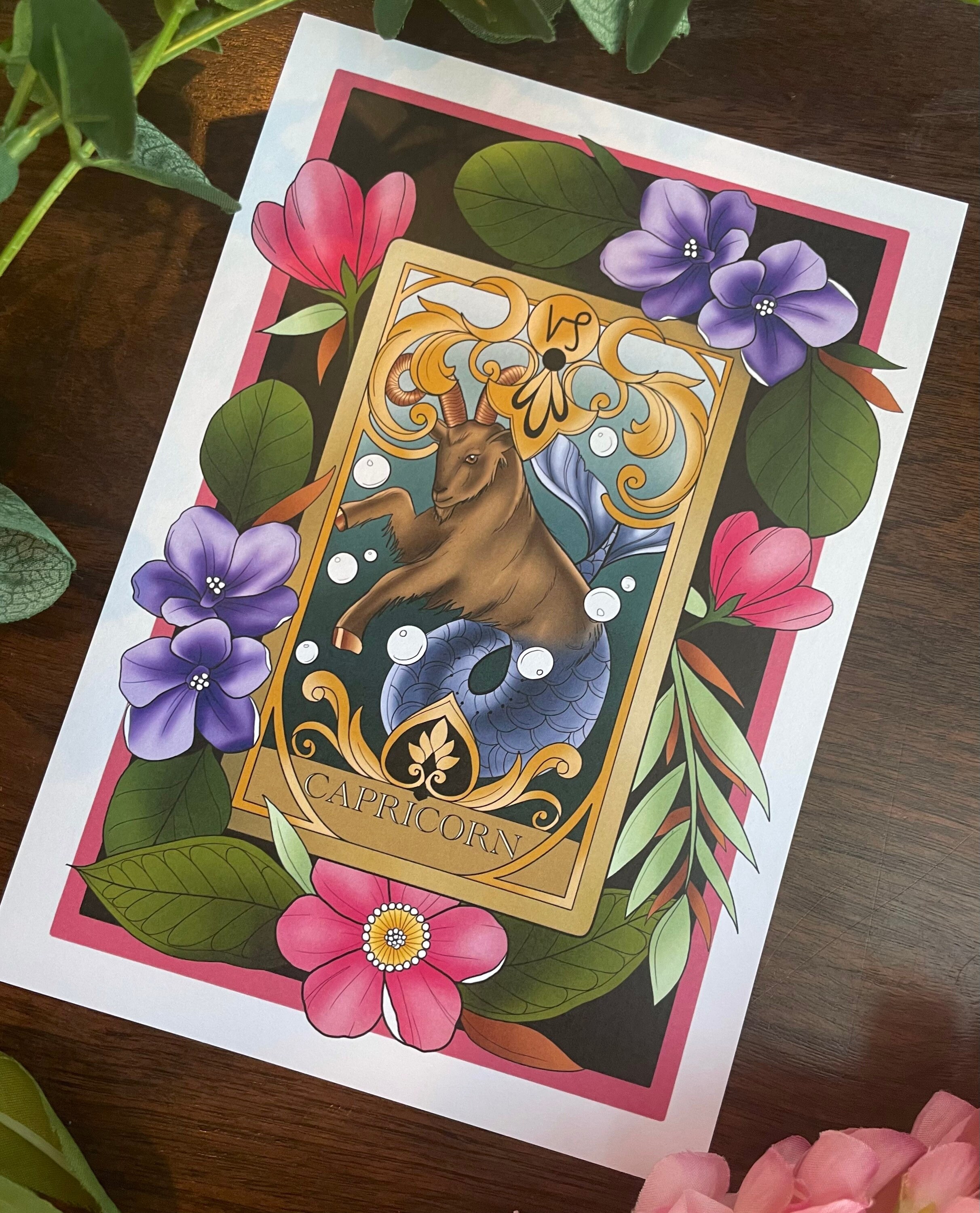 Capricorn Tattoo Style Zodiac Tarot Card Star Sign Etsy
