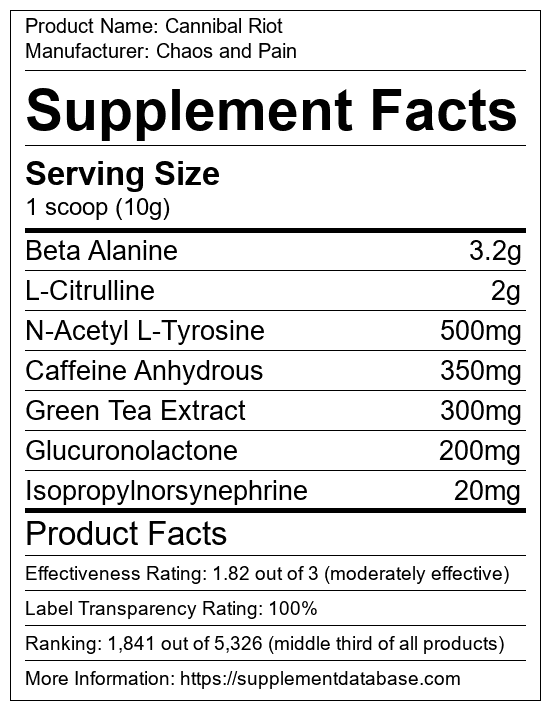Chaos and Pain Cannibal Riot Pre-Workout. It is a sneaky-good daily driver pre workout for stim junkies that are looking to take a. Cannibal Inferno Amped Apocalypse fat burner what do you guys think about this product.